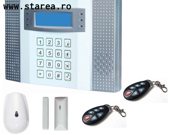 • 32 zone fără fir , 8 zone pe fir (pentru detectori suplimentari). Atributele zonelor sunt programabile
